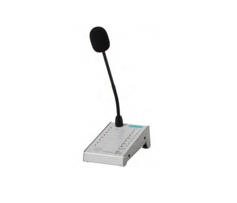 • Omroepstation met 8 zonedruktoetsen en spreeksleuteltoets • Zwanenhals microfoon met • Bewaakte microfoon • Gegevensoverdracht via PACE-Bus (RS485) • Audio-uitgang 0 dB (lijnvolume) • LED indicaties voor ontruimingszones en spreeksleuteltoets • Verbinding met bedieningspaneel via CAT5-kabel of hoger (max. 500 m) enRJ45-connector • Maximaal 4 omroepstations kunnen worden geconfigureerd in een cascade • Adaptermodule PTO2008-A1 voor aansluiting op matrix • Optie om maximaal drie uitbreidingsmodules toe te voegen, elk met 8zonedruktoetsen • Adresseerbaar via 8-weg SIP-schakelaar in apparaat • Aanpasbare tekststroken voor druktoetsidentificatie • Robuust metalen behuizing